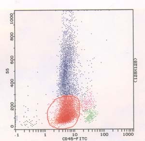 En casos de leucemias agudas la inmunotipificación es la herramienta definitiva para la caracterización del linaje celular. La utilización de un mínimo de 5 parámetros (2 parámetros de dispersión de luz y 3 parámetros de inmunofluorescencia) permite resolver la compleja heterogeneidad del tejido hematopoyético.